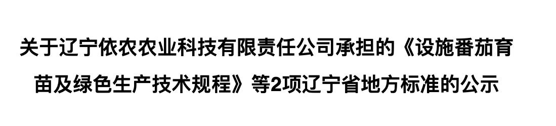 根據(jù)遼寧省地方標準管理辦法(遼農(nóng)監(jiān)[2017]34號)要求,現(xiàn)將遼寧依農(nóng)農(nóng)業(yè)科技有限責任公司和遼寧省農(nóng)業(yè)科學院共同承擔的《設(shè)施黃瓜育苗及綠色生產(chǎn)技術(shù)規(guī)程》征求意見稿和《設(shè)施番茄育苗及綠色生產(chǎn)技術(shù)規(guī)程》等2項遼寧省地方標準進行公示,并面向社會征求意見.